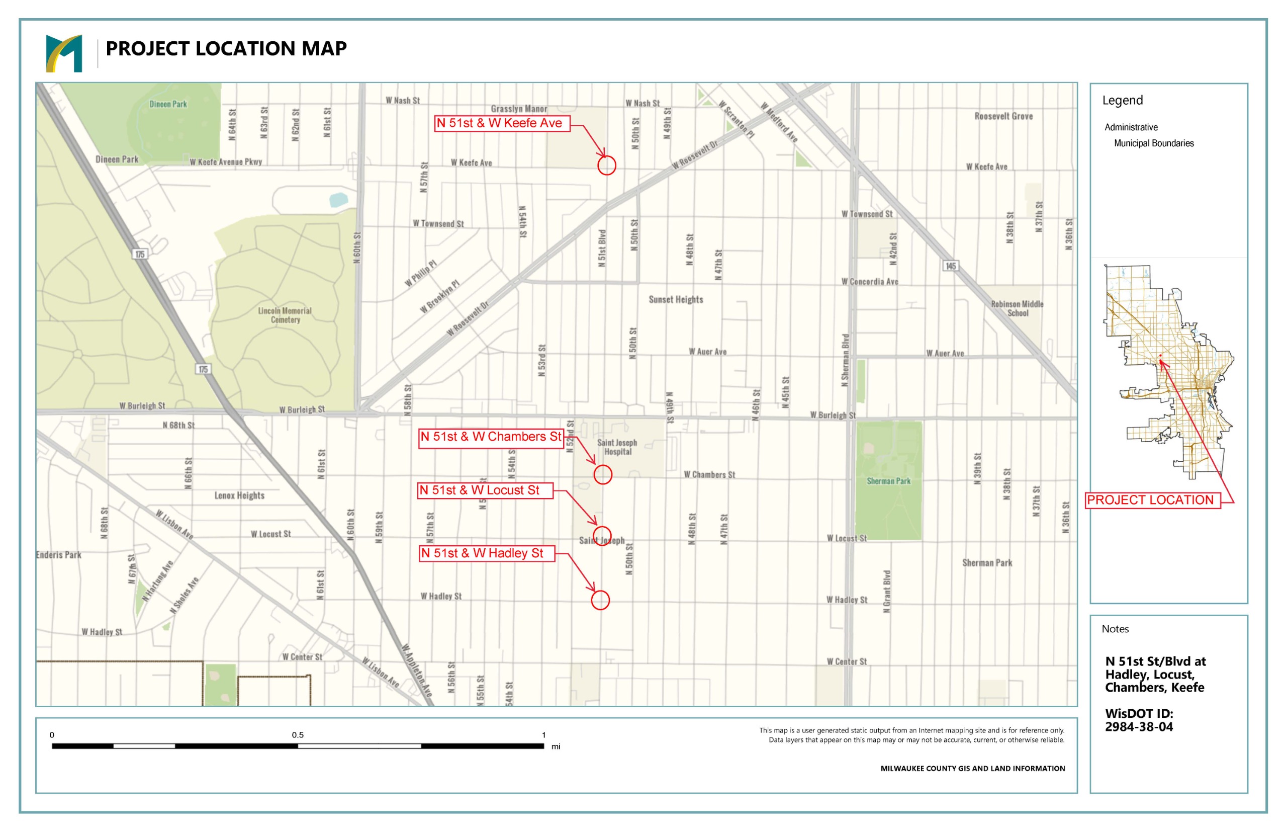 - The section of W. Locust Street at N. 51st Street and N. 51st Boulevard at W. Keefe Avenue are on the City of Milwaukee's pedestrian high injury network.